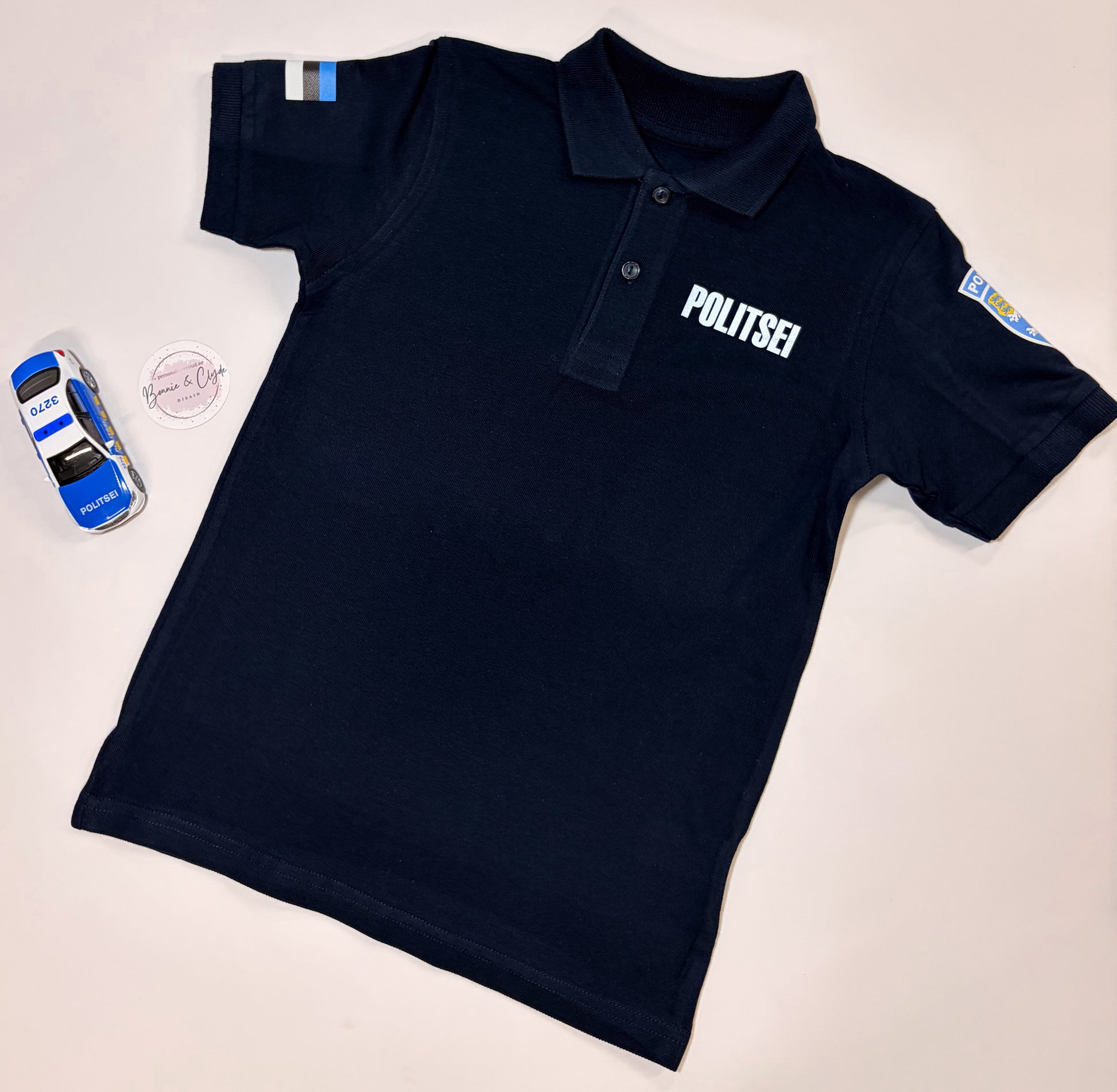 Laste politsei polosärk 100% puuvillast. Mugav ja kvaliteetne vormisärk väikesele politseinikule – sobib mängimiseks ja igapäevaseks kandmiseks.